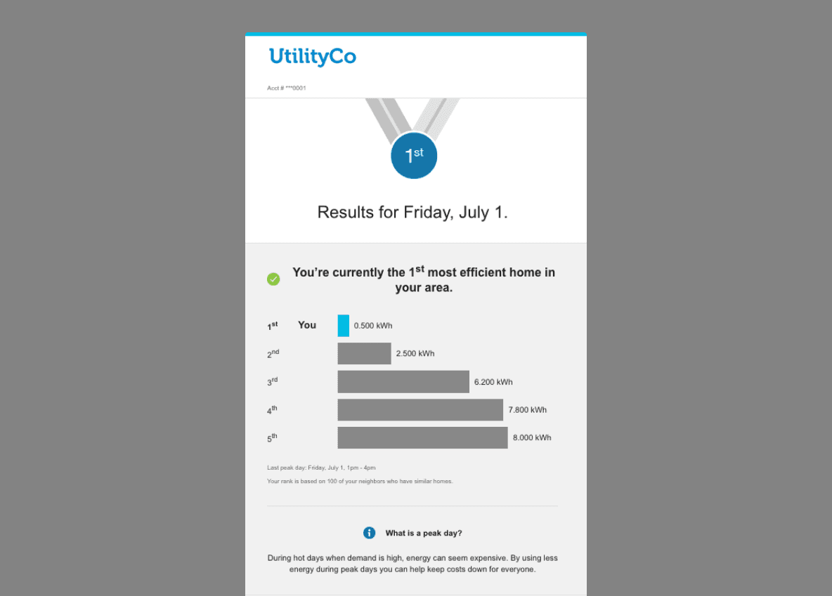 The BDR & PTR emails emphasized rank-based outcomes without sufficient context, explanation, or acknowledgment of effort. While these comparisons were technically accurate, they often failed to reflect real-world factors influencing energy use and left many customers uncertain about what their performance actually meant.