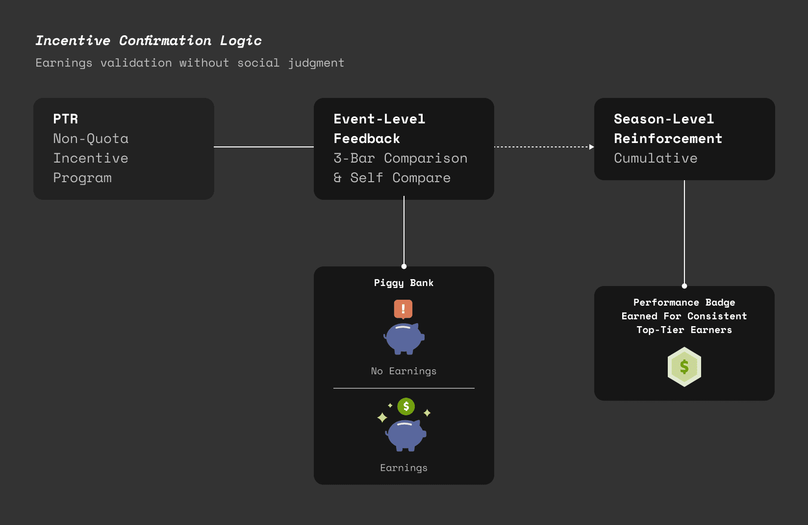 Instead of competitive comparison, I designed a reinforcement system focused on earnings validation.