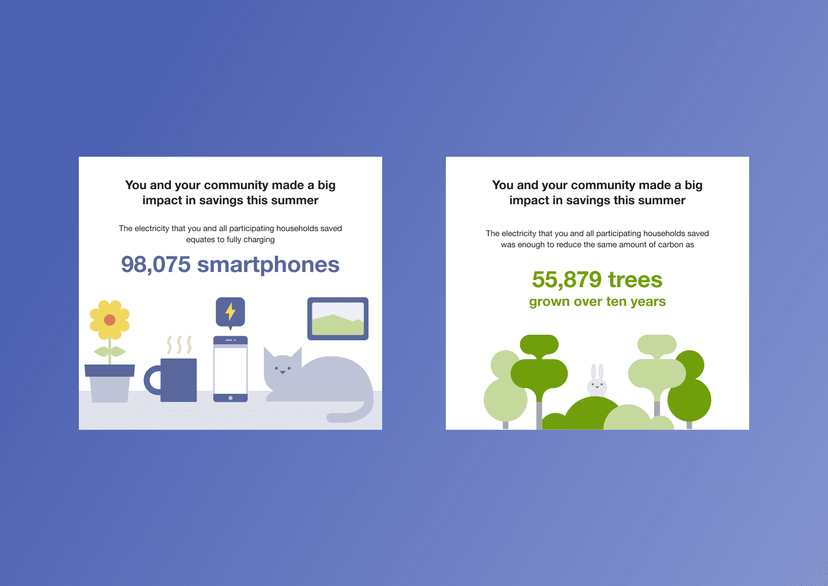 For climate-motivated audiences, savings were translated into environmental impact (e.g., trees grown).